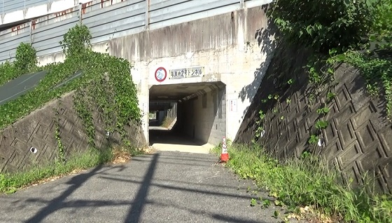 のトンネルを通過。右の道が当初予定のルートでしたが、工事車