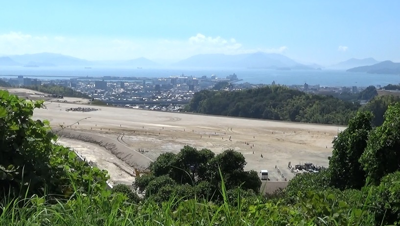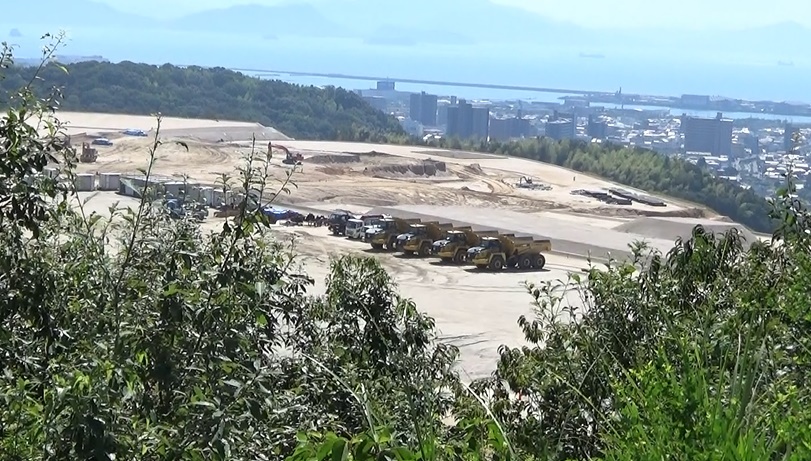 た。宮島や宮島口の方も見えています。眼下の造成地にダンプな