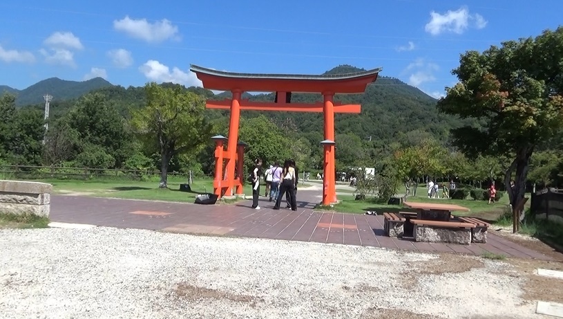 赤い鳥居が見えます。グーグルマップには宮島SA鳥居と記載。