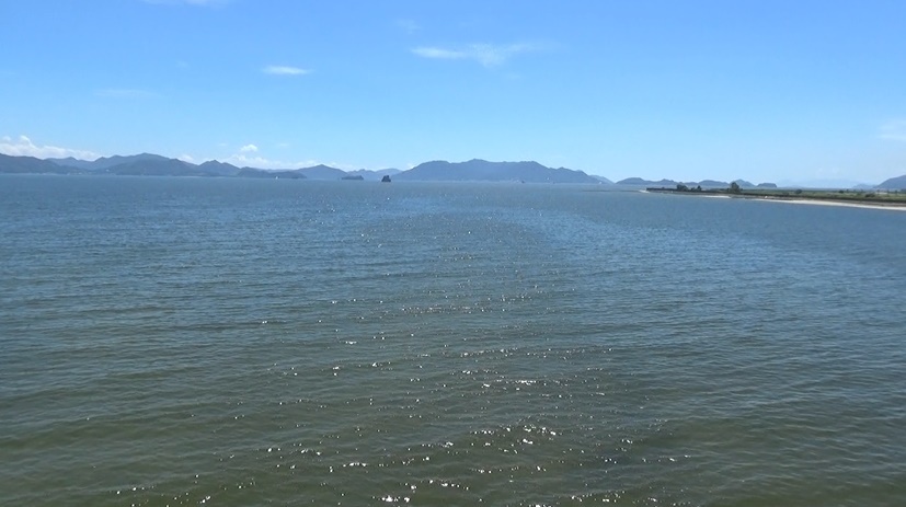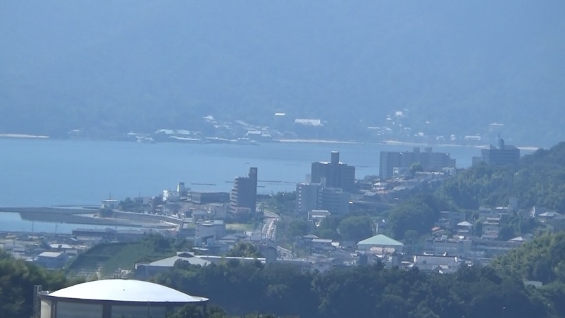 緑がなくて暑い感じ。その向こうに海や島が見えます。遠くはか
