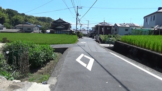 暑い。バス路線を上がります。この道なら速谷神社にお参りし