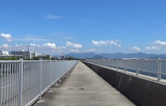 新八幡川橋を渡って草津の堤防へ。暑いけど釣りの人が数人。