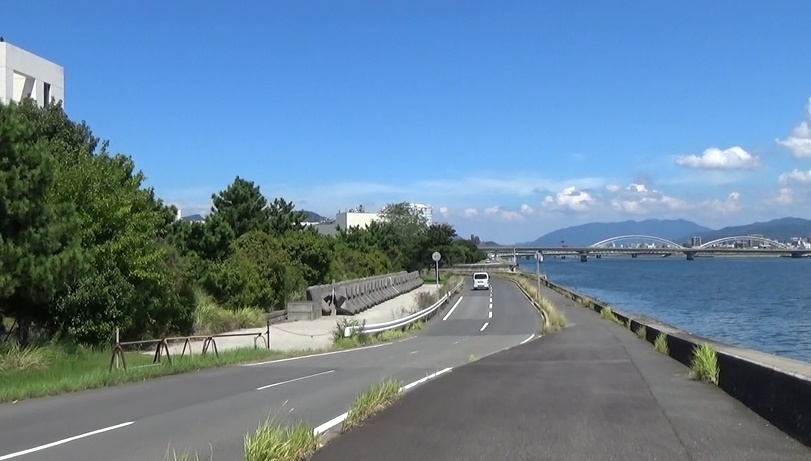 太田川大橋を渡りました。宮島がはっきり見えるから視界良好。