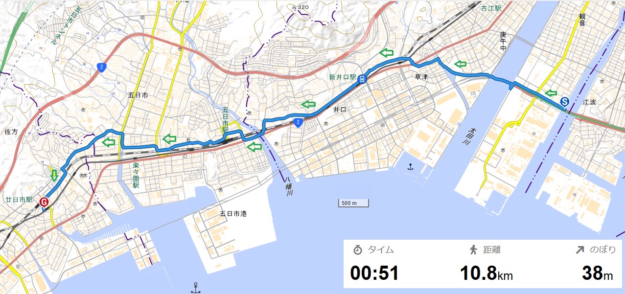 ます。宮島街道の西側から廿日市駅に向かいました。