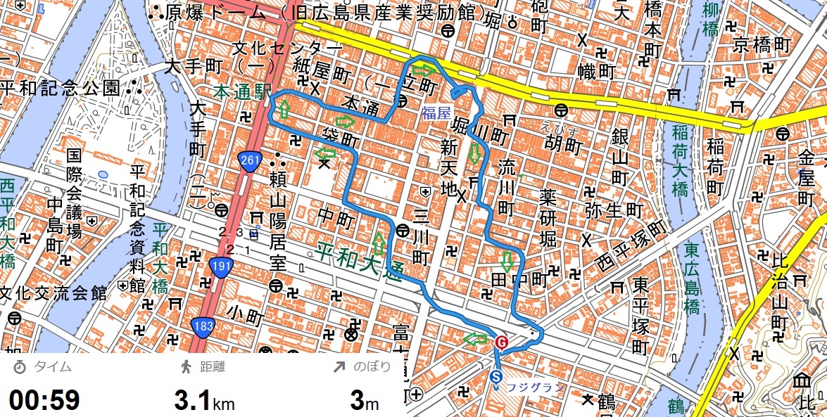 朝の平和公園や紙屋町付近