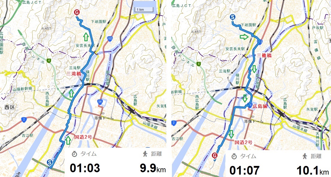 舟入から大芝水門・戸坂駅往復