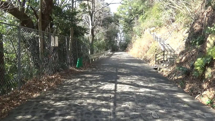 斜面は山陰で寒い感じ。木に葉がない景色。先に展望場へ行きま