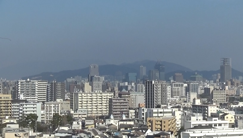 いるみたいで遠くになるほど黄色くかすんでいます。雲が少ない