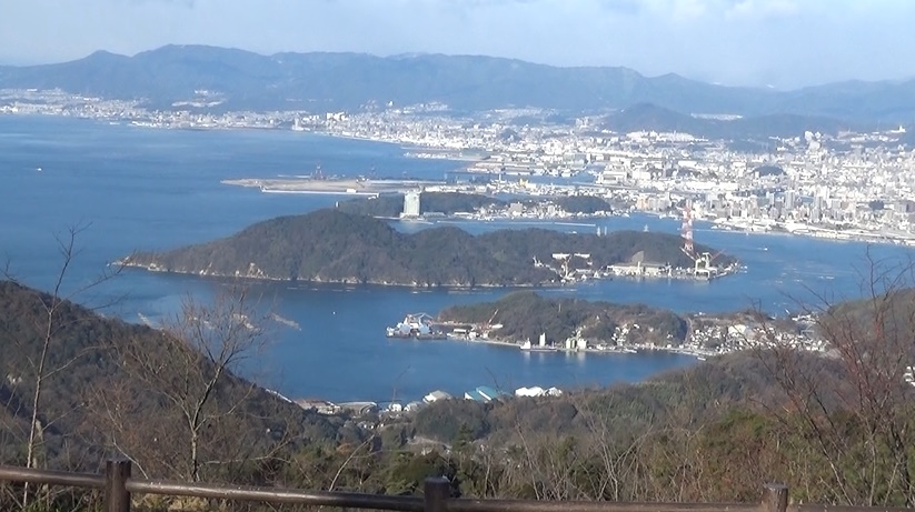 山が見えます。近くの似島は少し木が邪魔。展望台の完成を待ち