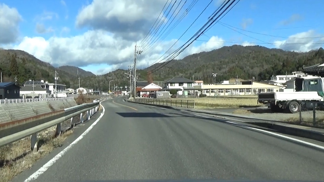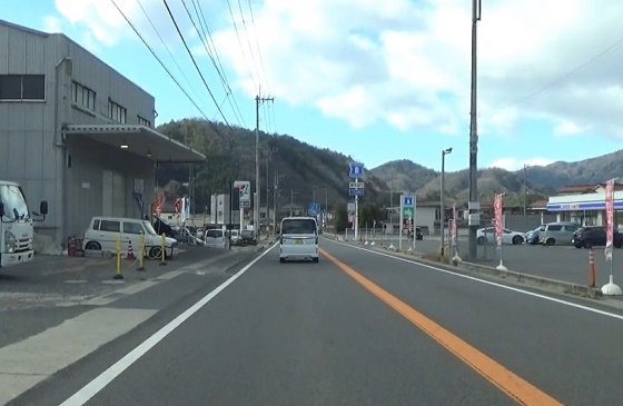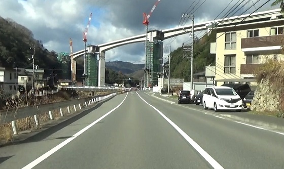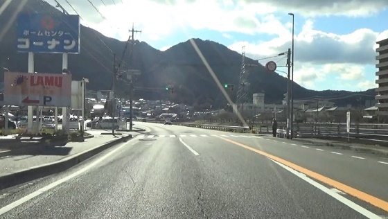 ます。熊野川沿いの道。東広島市への分岐を過ぎて東広島バイパ