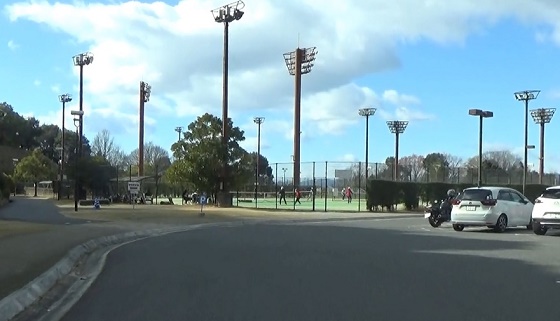 水源池北側から熊野町民グラウンド北側へ移動。観音山登山口の