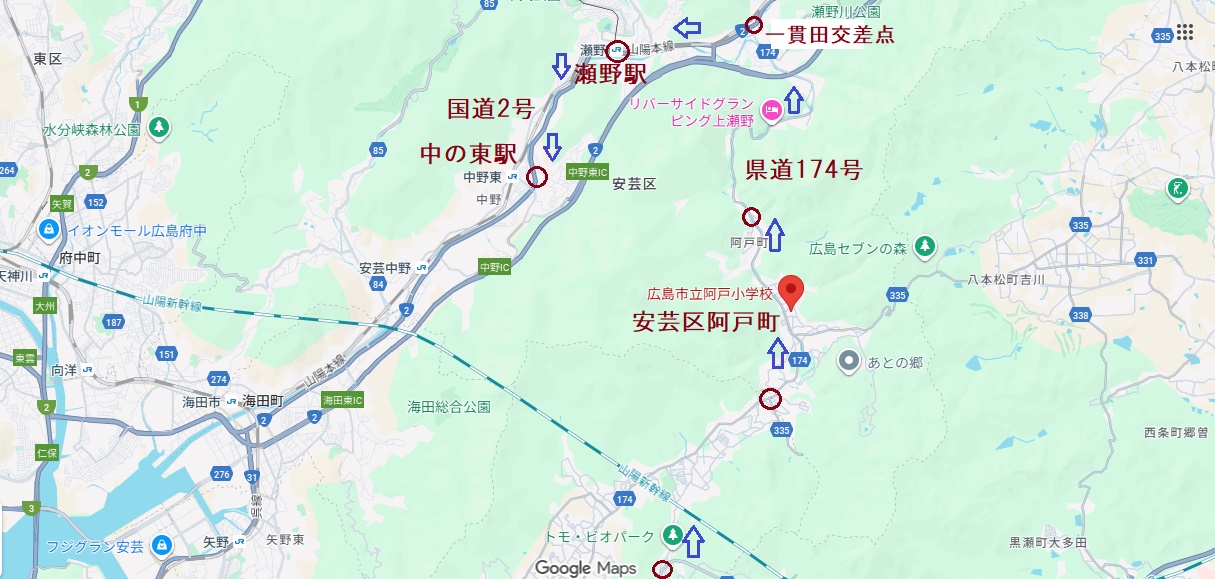 まだお昼の時間。瀬野川を渡って安芸中野駅前を通過。畑賀地