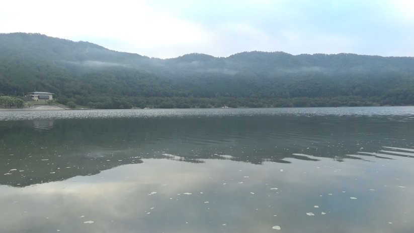 を眺めます。奥の山にはキリがありました。水を循環するために