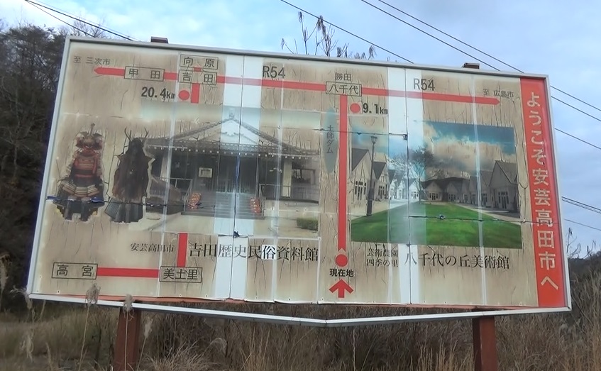 に安芸高田市の市境があります。その先に土師ダム。川井大橋は