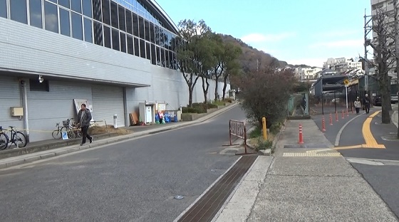 車道に合流して下ります。小学校横を下ってアストラムライン