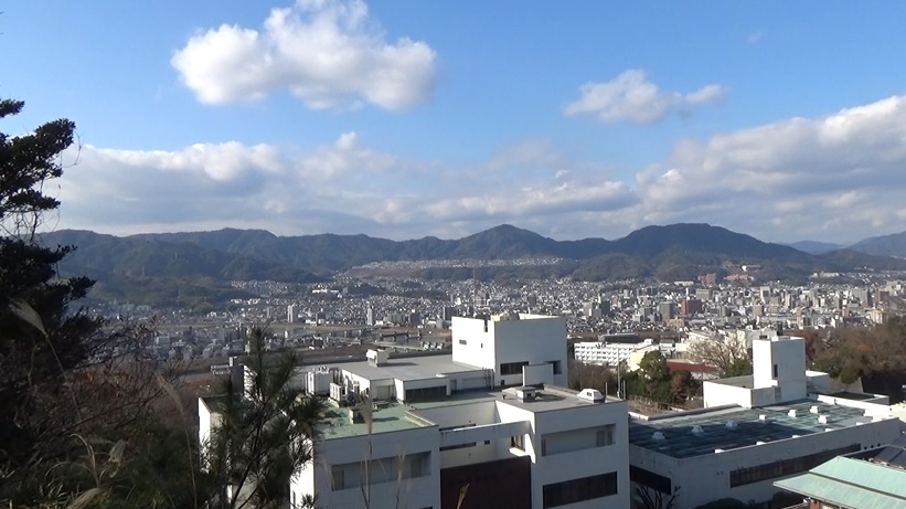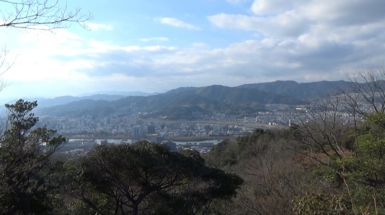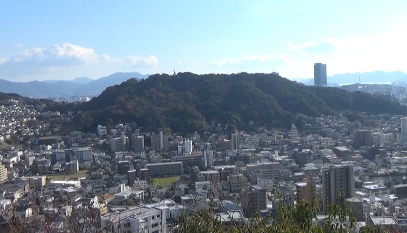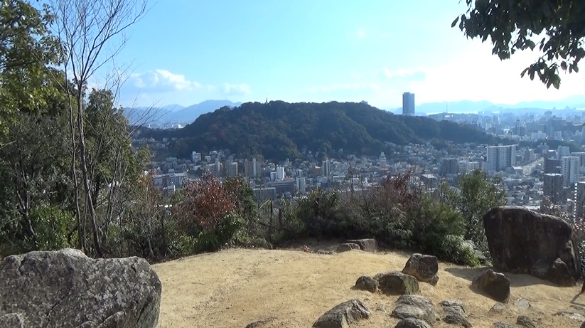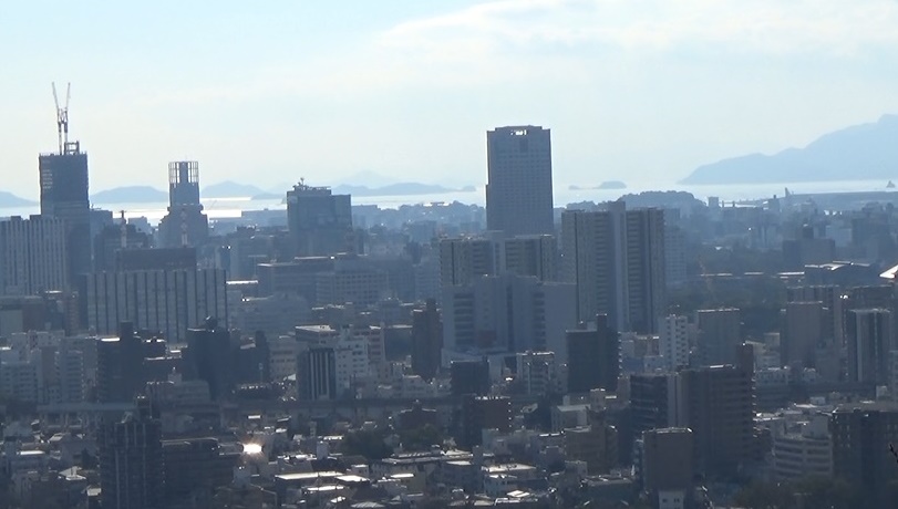 南の景色を眺めます。南東の方から尾長山・二葉山・比治山や広