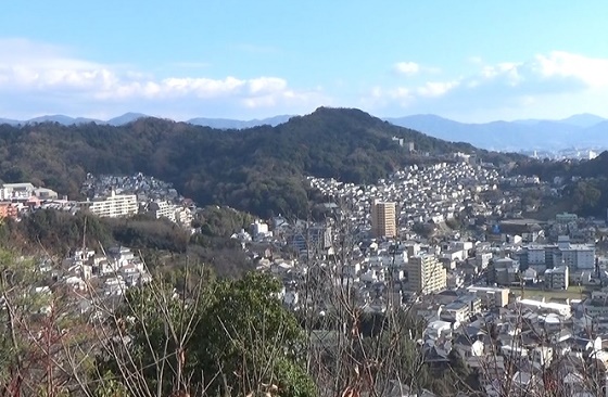 遊歩道。神田山荘近くから北西に、丸山・石山・火山・武田山が
