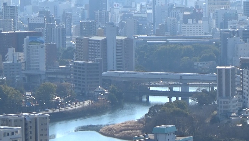 りした景色にならないけど、川やホテルなども確認。新幹線が通