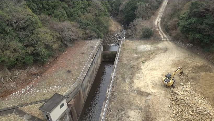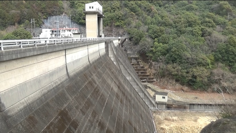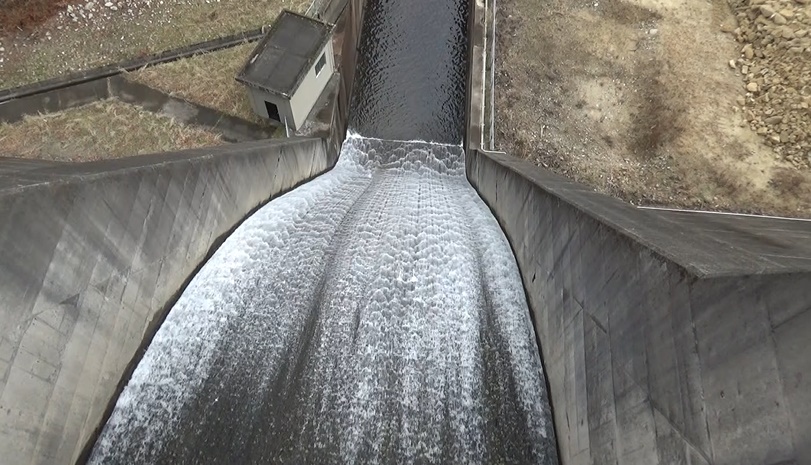 途中まで渡ってみよう。放水しているから水音が聞こえます。下