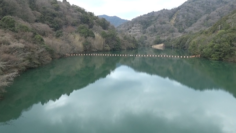上流側は緑色のダム湖。この奥にキャンプ場があるそうです。