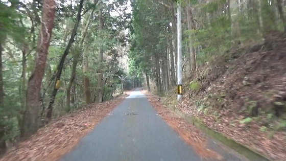 家から離れてカーブも多くなります。木が高くて展望なし。道は