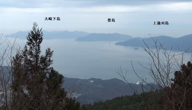 なって展望悪くなったかな。海が見えます。上蒲刈島、豊島、大