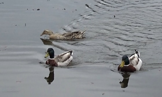 慣れているのかな。1mの近さ。首が緑色の雄のマガモ。雌も