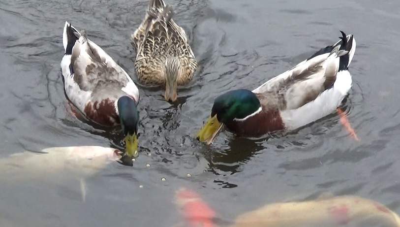 います。コイの餌を先にパクパク食べました。食べるのも早い。