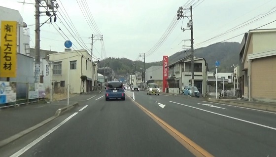 蒲刈島への分岐を過ぎて仁方の町へ。雨がよく降るから車窓動画