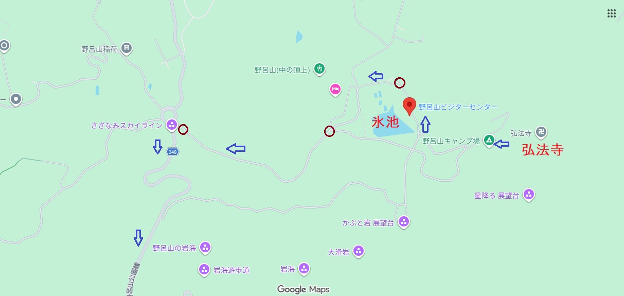 案内を確認して運転。まずは氷池前、そして狭い石畳の道も通っ