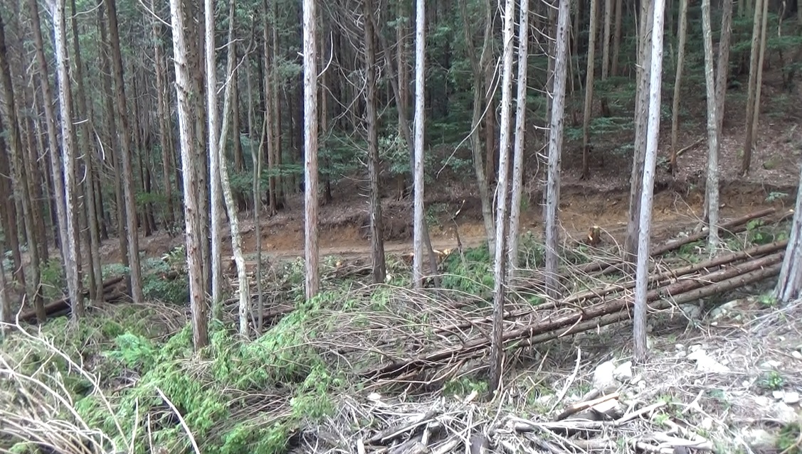 植林で下草が少ないから歩けます。たどるとすぐに伐採地の北