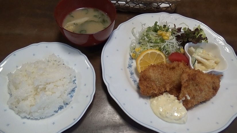 ゆめマートの近くで魚フライ定食を食べました。けっこう待っ