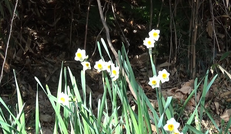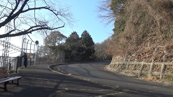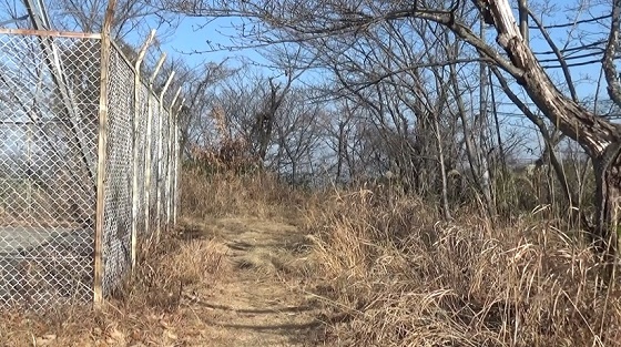 る北斜面。太い桜の木が多いけどまだ寒い景色。日が当たらない