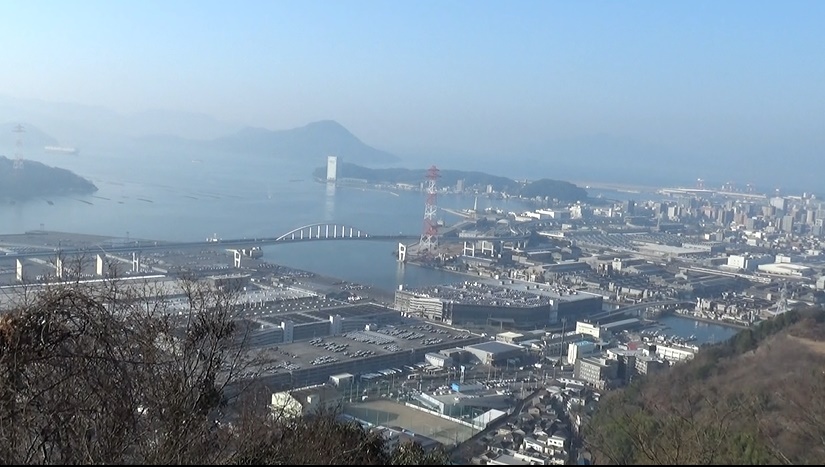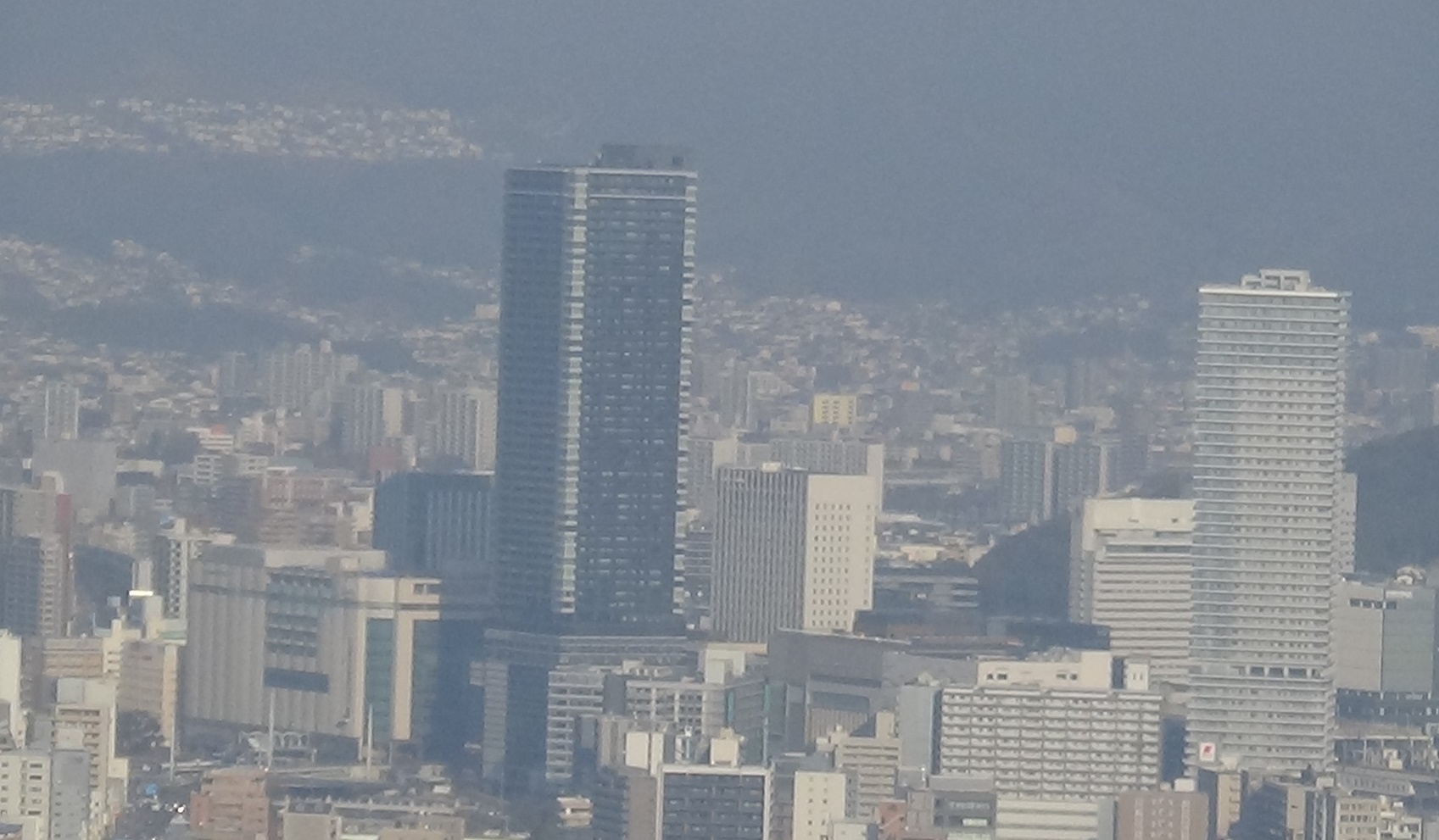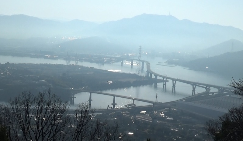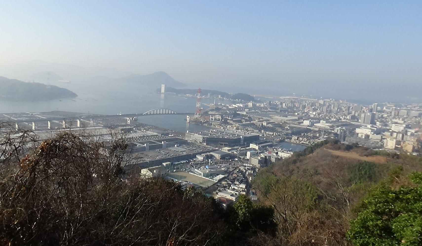 南西の右に宇品島や似島が望めます。それにしてもひどいかすみ。