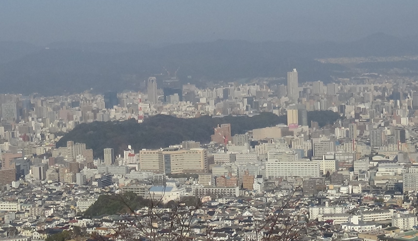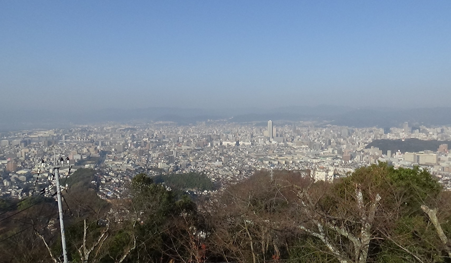 した。白いから見つけにくい。奥に二葉山や牛田山。松笠山や二