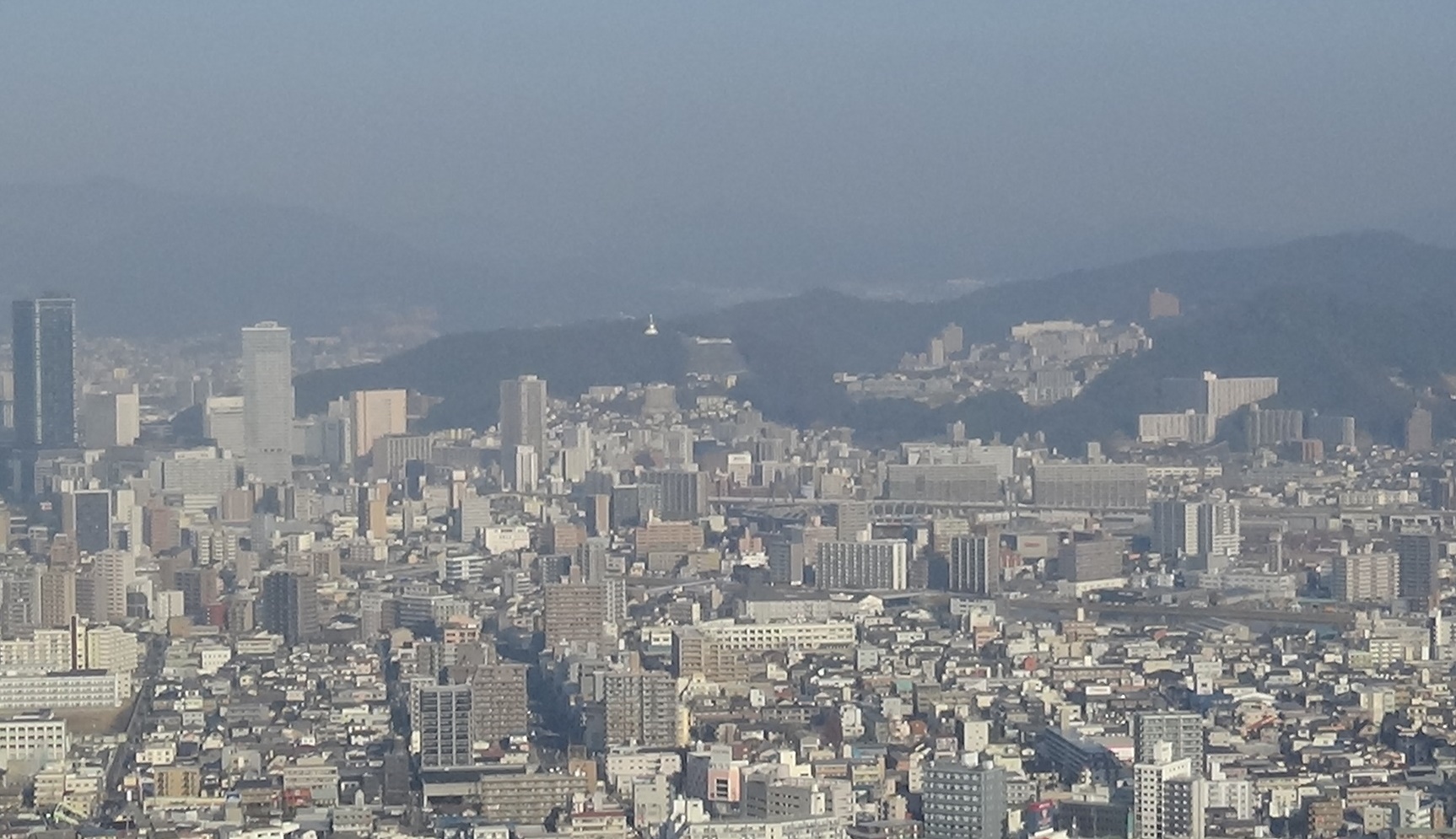 広大病院や比治山の方向。奥にリーガロイヤルホテルや広銀本