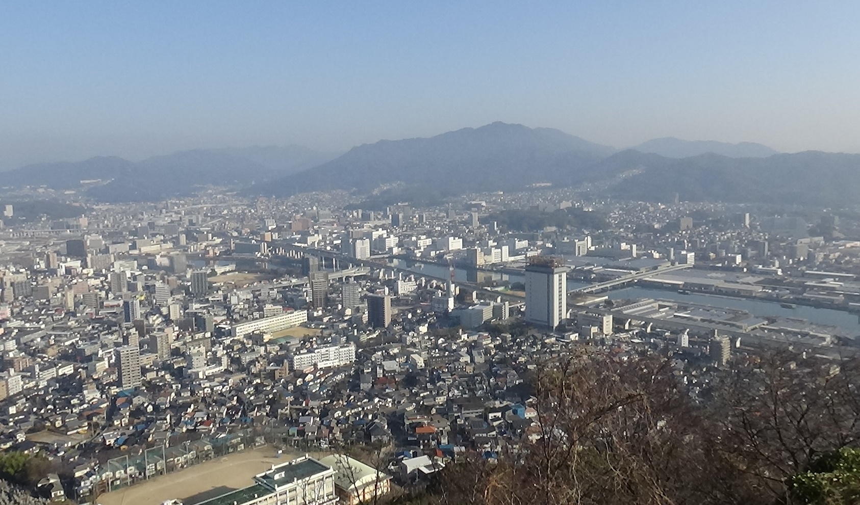った山々も眺めます。近くの仁保橋や黄金橋もよく見えます。東
