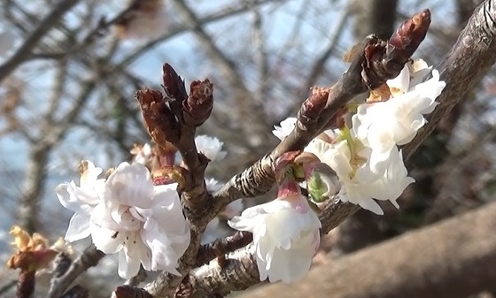 南側の広場では早咲きの桜が咲いていました。種類が多いから