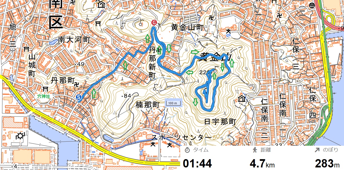 いろんな桜がある黄金山。バッテリー交換して下山開始。ランニ