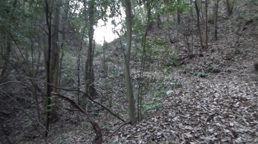 さてどのルートで下りようかな。川側の斜面に郭があるから、