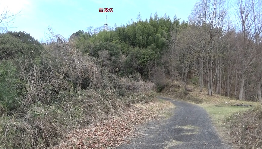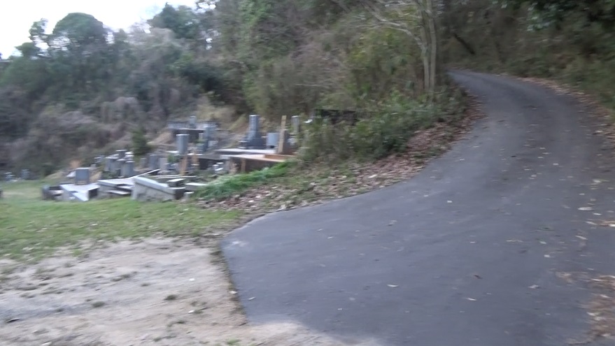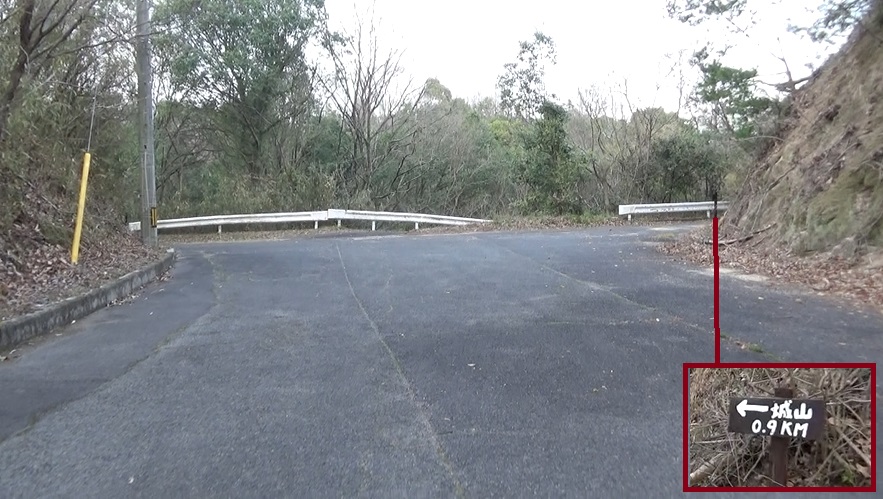 墓地横の舗装路に合流。少し上に分岐があり「城山900m」