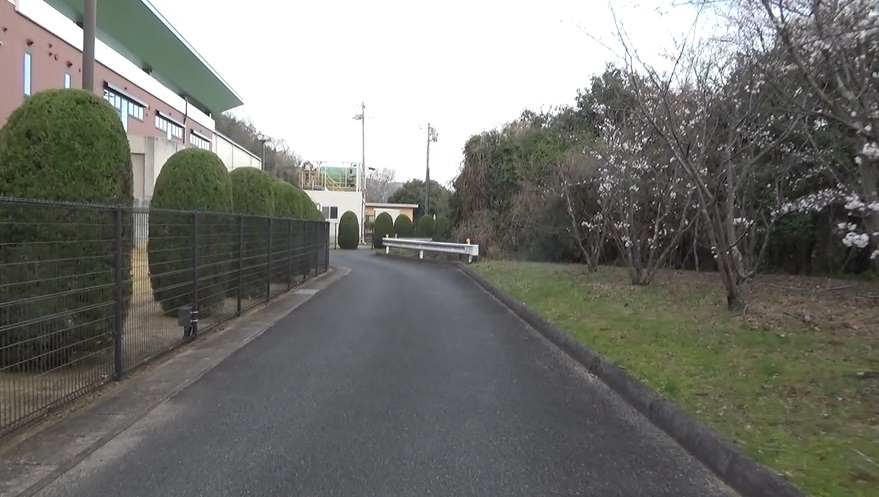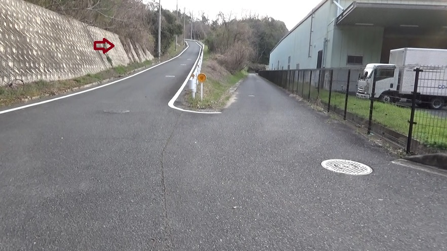 装車道がありました。そちらを下ります。この道だと製薬会社ま