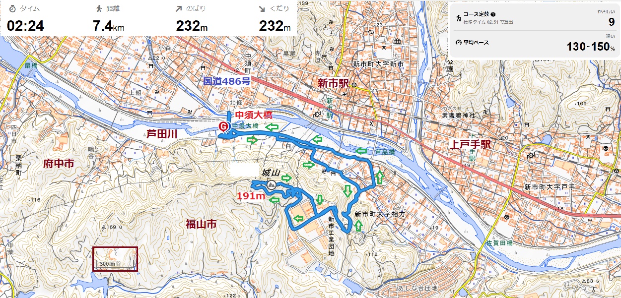 ふもとに素盞嗚神社や上戸手駅があります。昨日歩いたところだ