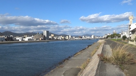 行。間所IC前に出ます。ここから府中大川沿いに下流へ。