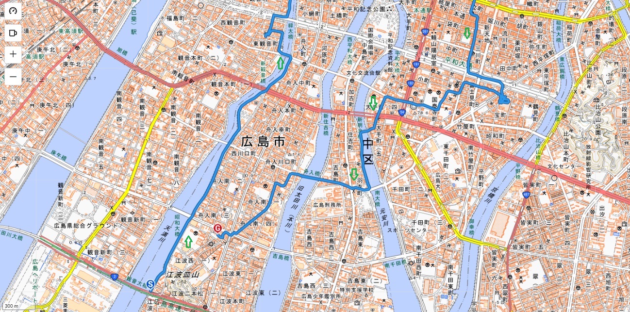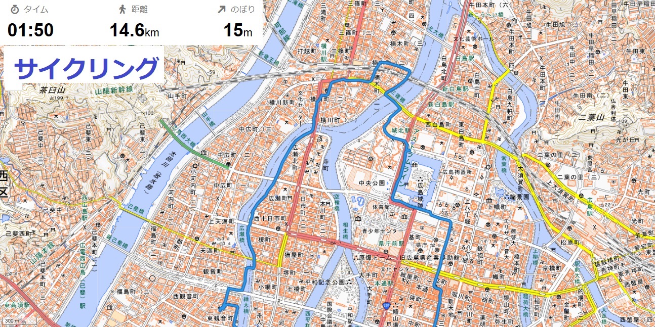 ト。舟入橋、南大橋を渡って東千田公園へ。続けて国道2号の平