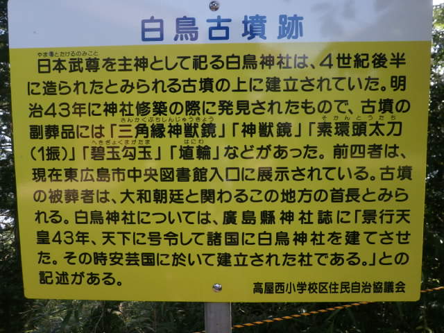 ます。ここに神社の案内板がありました。白鳥山と松子山が見え