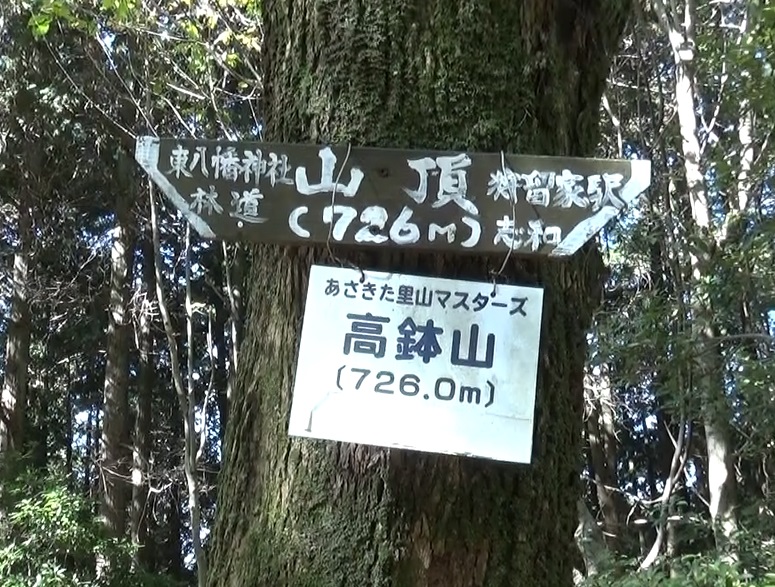 展望がないけど広いところ。柿の木に高鉢山名札がつけられてい