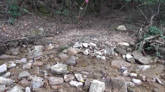 ました。砂防堰を続けて越えていきます。秋の虫の鳴き声が小さ