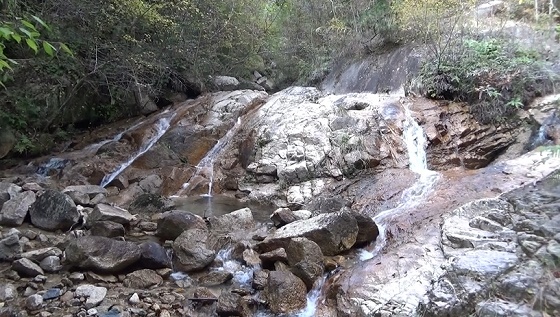 大野鉱山跡になります。もう車が入れません。川石の上を歩き