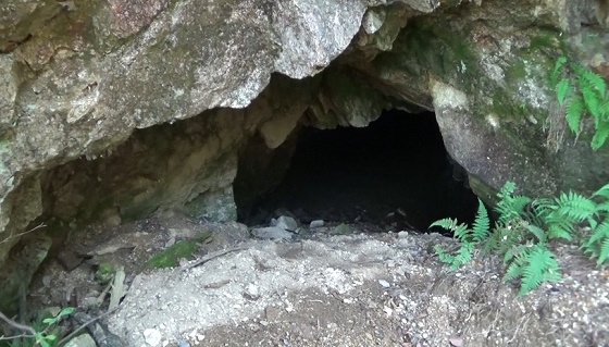 坑道跡があります。ひんやり。中に水がたまっています。この